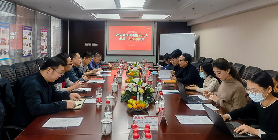 中国信通院云大所领导一行莅临亿赛通,携手整合技术优势,开展合作交流11月22日,中国信息通信研究院云计算和大数据研究所(以下简称:云大所)副所长魏凯一行到访亿赛通考察交流,亿赛通公司管理团队陪同参观公司并举行交流会。
